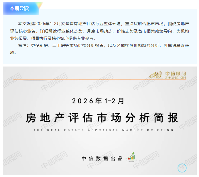 市場分析 | 2026年1-2月:安徽省及合肥市房地產評估市場分析簡報